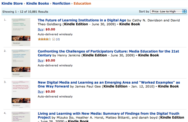Sorting by Price: Low to High yields some absolute gems that, granted, are available for free as PDFs, but are formatted perfectly for the Kindle. It makes for a wonderful experience: