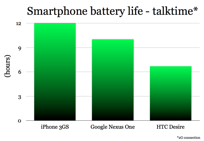Battery life: iPhone 3GS vs Google Nexus One vs HTC Desire