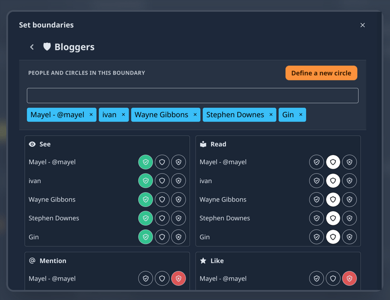 Within bonfire, you now have the possibility to define circles and boundaries: a way to privately group some of your contacts and then grant them permissions to interact with you and each piece of content you share at the most granular level.
