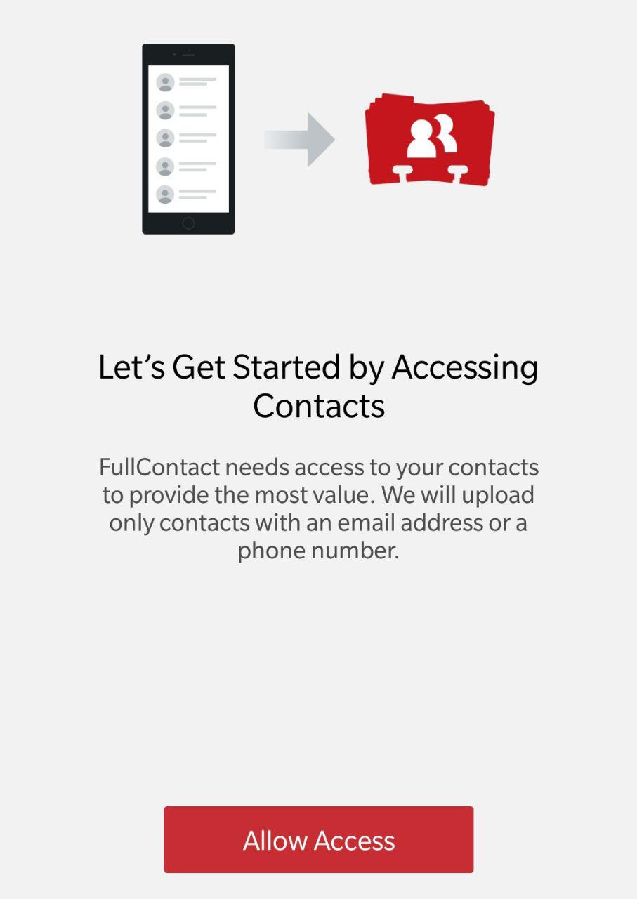 So, for example, I use an app called FullContact to manage my contacts across various accounts and to automatically update their details. It’s great, and I’m a paying subscriber to their service. When I install it on my Android smartphone, I get a screen which prompts me to give the app access to my contacts: