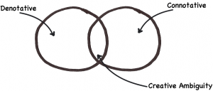 Terms and phrases, however, can be ambiguous in a number of ways. Some of these types of ambiguity allow for creative spaces between the denotative and connotative elements of a new term to a greater or lesser degree. In other words, they involve greater or smaller amounts of ambiguity.