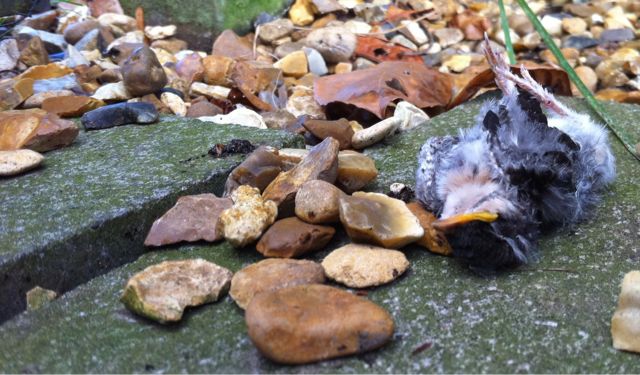 I’ve scraped up five house martin chicks in two days. It wasn’t a pretty sight.