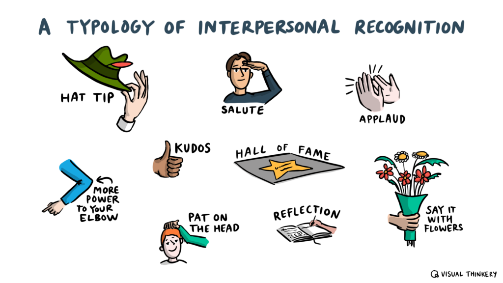 We were talking about different types of recognition and decided that we wanted to focus on interpersonal recognition. Between our co-working planning sessions, Bryan had a fantastic idea to create a ‘typology’ which focuses on the kind of gestures we tend to use when recognising each other.