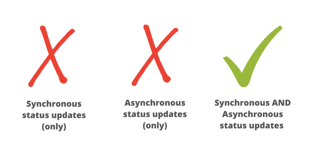The most popular (the default, even!) are those only doing synchronous project updates. This means that the team, group, or other unit of organisation finds out the whole picture of what’s going on in the weekly team meeting.