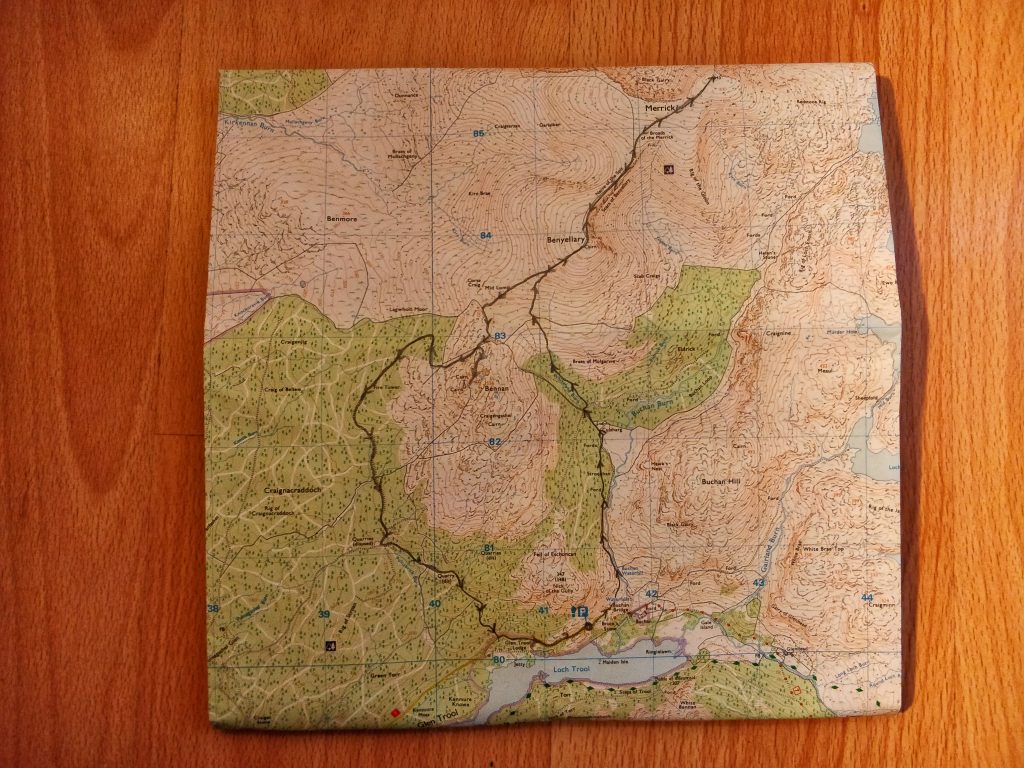 Before we set off, and while I was still at home, I planned the route for the first day and had a rough idea of what we would do on the second. I used a paper map (Galloway Forest Park North, OS Explorer Map 318) and the OS Maps app (I’m a premium subscriber). Hannah, my wife, came with me.