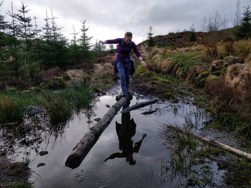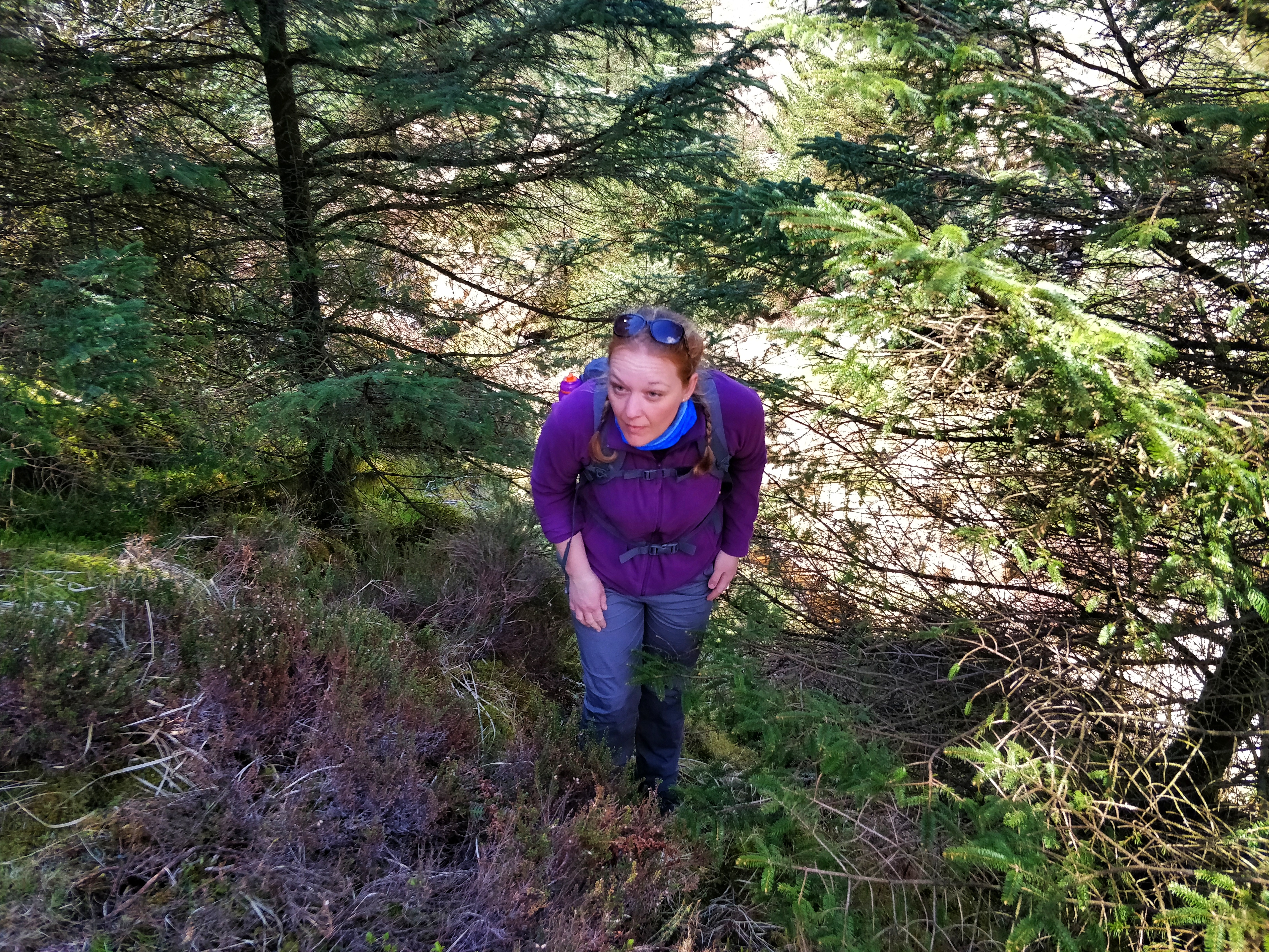 It wasn’t a good decision. This was Hannah’s first mountain day, so when I went ahead to have a look, I should have turned back and stuck to the track. In the event, she coped really well, but it was a pretty treacherous route down: sheer drops, boggy ground, and felled trees.