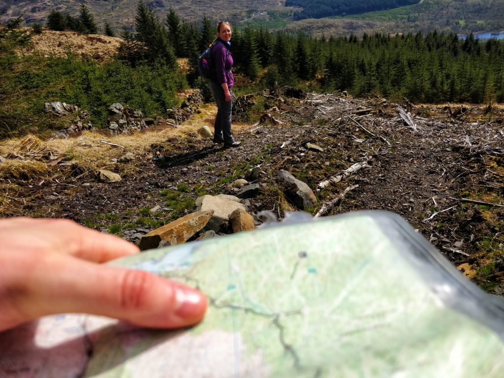 In Scotland, it’s always difficult to know how much of the ‘forest’ area shown on a map will actually be wooded. It’s a managed forest, so sometimes there’s no trees at all, just stumps!