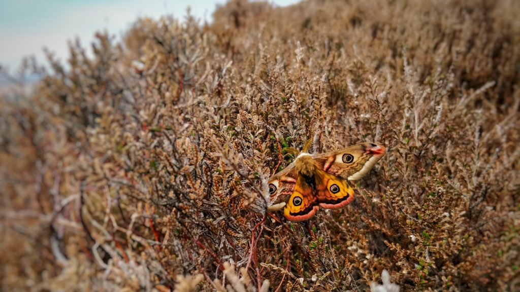 We trudged down Black Craig through boggy heather. Hannah spotted a moth, and we saw a lot of bees.