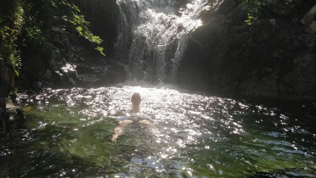 Tom convinced me to have a dip in a pool created by a waterfall near the top of Hayeswater Gill. The water was freezing, but the experience nevertheless glorious.