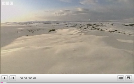 There’s been snow on the ground here in Northumberland since before my birthday (December 22nd). It’s several inches deep now and it’s snowing more as I type this. Suffice to say, the whole world around here has ground to a halt. BBC News have a wonderful video of a helicopter ride over Yorkshire (where I used to live) and Northumberland. Unfortunately I can’t embed it, so you’ll have to click through: