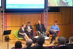 There was also an attempt to get students involved. In fact, 14 schools were invited to take part via a video link (not live two-way, unfortunately) and Twitter hashtag (#BectaX). There was a cool Flash-powered map that appeared on the screen every so often showing tweets from the schools.