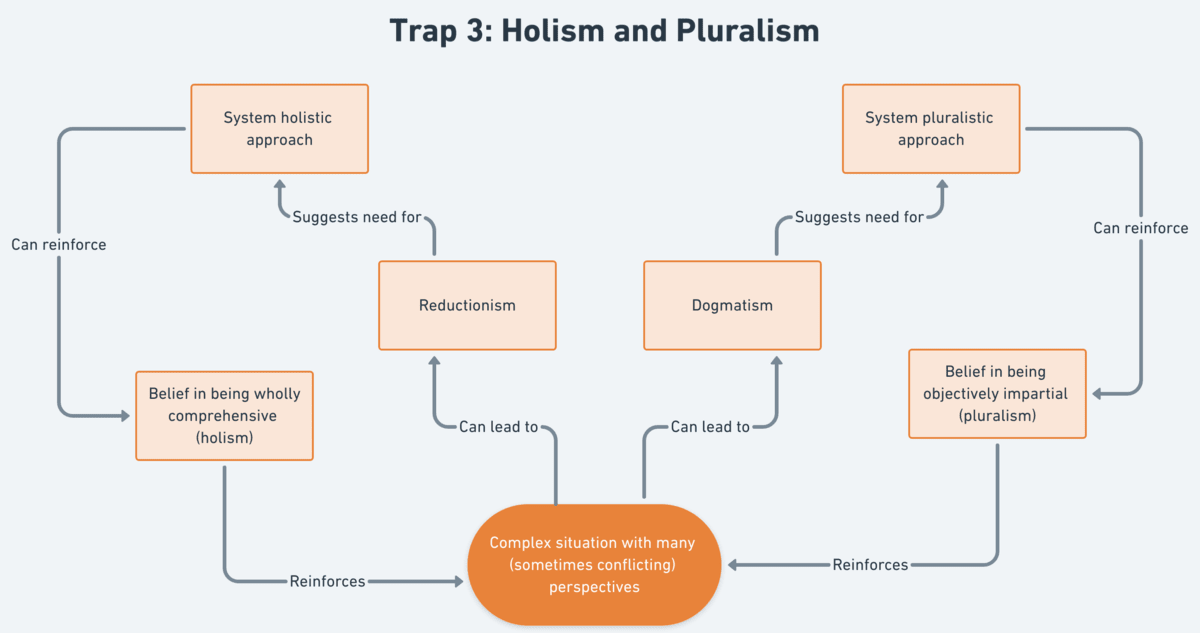 [Trap 1] is a concern about having a limited understanding of a situation because of silo thinking or narrow-mindedness. The two approaches that have traditionally addressed this are System Dynamics (SD) and the Viable System Model (VSM).