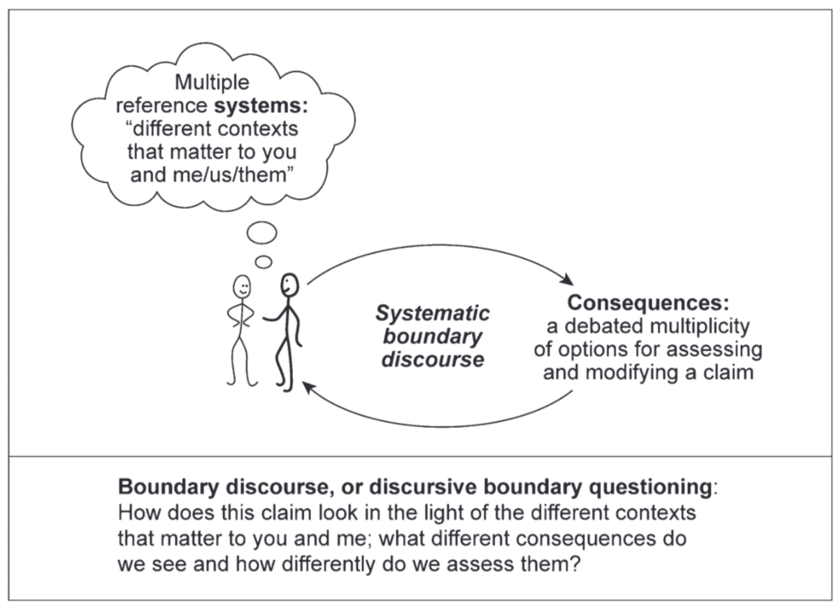 a claim to ‘boundary questioning’, we examine its consequences in the light of alternative sets of boundary judgements (those assumed in the claim as well as options).(Reynolds & Ulrich, 2020, p.275)