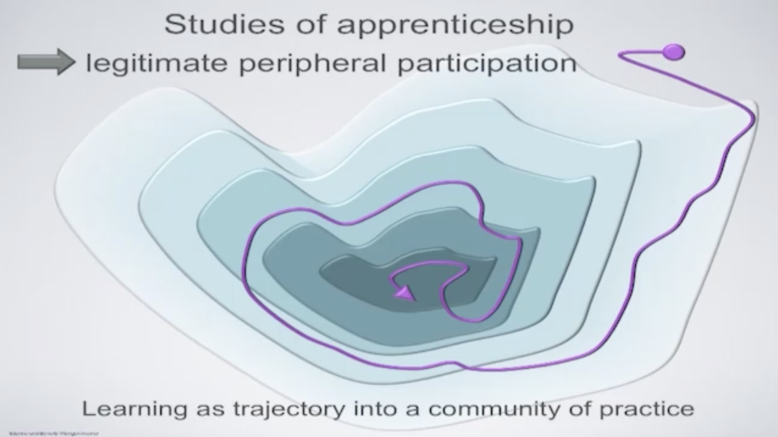 I hadn’t realised that he coined the term ‘community of practice’ (CoP) to describe the social structures observed around traditional apprenticeships. Wenger-Trayner observed that learning is not simply a transaction between a master and an apprentice but involves the entire community.