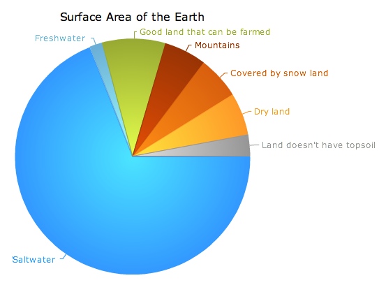 - I found this infographic showing what covers the surface of the earth. Have a look below – I was surprised that there’s as much land covered by snow as good farming land):