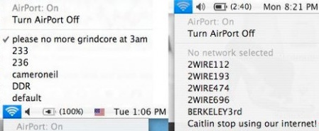 - The wireless networks at my house have fairly boring names. I like these ones better (via @swissmiss)