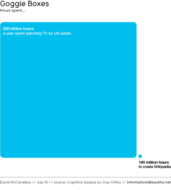 - David McCandless at Information is Beautiful has visualized Clay Shirky’s ‘cognitive surplus’: