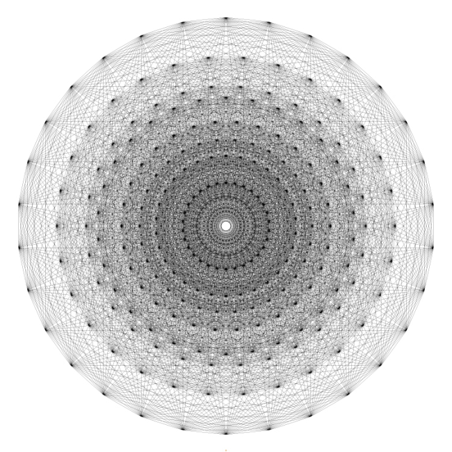 - The 4_21 polytype is, apparently, “most geometrically complex and aesthetically beautiful structure in mathematics” and “models all interactions and transformations between known and postulated sub-atomic particles.” It’s so complex that machines can’t draw it (because they can’t draw perfect circles). This is hand-drawn to a tolerance of 1/10,000: