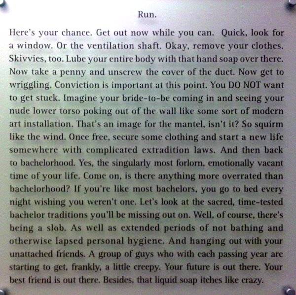 - A plaque found above a men’s urinal at a store selling diamond engagement rings. Is it reverse psychology or reverse-reverse psychology?