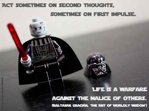 I’m not agreeing with Gracián that everyone is full of malice. But you need to be on your guard and mix things up a bit sometimes… :-p