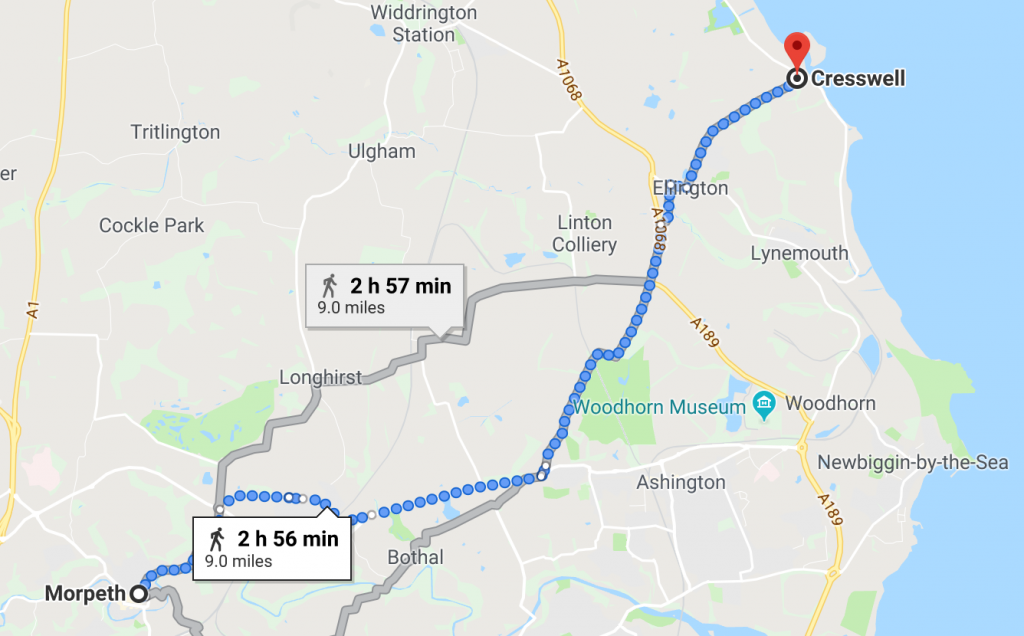 As you can see from the Google Maps route above, I was pushing it to fit it in between 9am and 3pm. In the end, though, I managed it, and it proved to be a very enjoyable 18 mile (30km) walk!