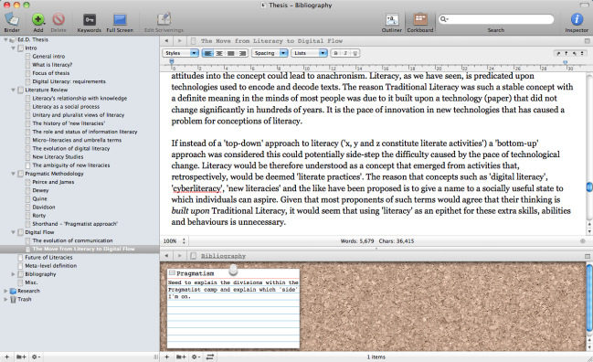 But I’ve made an exception. I’ve just bought Scrivener after using it for less than 24 hours. And that’s despite it having a 30 (non-consecutive) day trial. It’s going to revolutionise my writing of longer texts – like that Ed.D. thesis I’m almost half-way through…